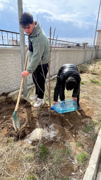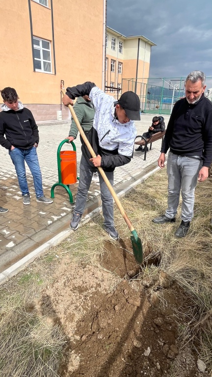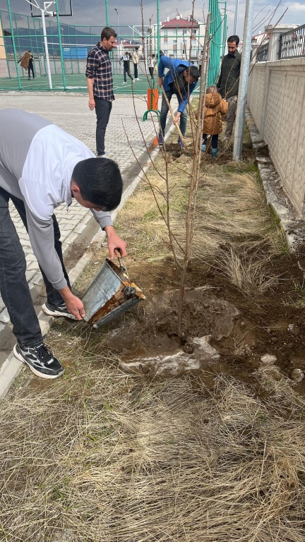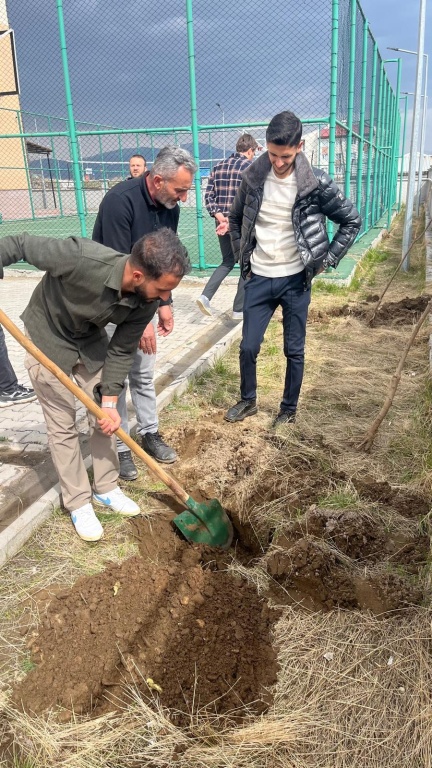 Etkinlik kapsamında meyve ve çam ağaçlarından oluşan birçok fidan toprakla buluşturuldu. Öğrenciler, kendi elleriyle diktikleri fidanlara can suyu vererek, doğaya sahip çıkmanın mutluluğunu yaşadı.
